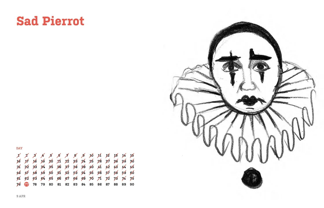 JJ: When I came back from the hospital, I just drew a self-portrait… maybe to make sure that I was still alive? And able to draw… The first drawing was on a blank dummy book of 96 pages that I had (you know, the sample sent by a printer to show what a book will look like, a book with white pages). So then I decided to draw one self-portrait a day, and to fill the book.