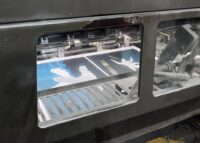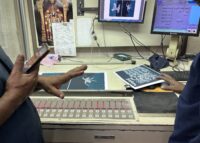 Initial proof with a paler black and pinholes and the next set of proofs with an added layer of black