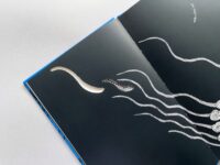 For the first edition, since the book had a single colour, a spot colour was used. It was a special black with an underlying hint of blue printed on coated paper. A spot colour is solid ink that is premixed to ensure consistency – unlike process colours that use cyan, magenta, yellow and black (CMYK) to achieve a range of colours.