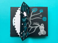 This was when Jonathan realised that the die-cuts had to be organic, and link to the art. While relooking the illustrations, he noticed how they lent themselves to two meanings For instance, the peacock feather could become a comet’s tail. The shape of a tear could also be the one of a flame. This discovery helped him to play with the die-cuts. Eventually he worked out a visual rhythm. The book starts with a simple circle, and other shapes follow, with some being cut into the illustrations.