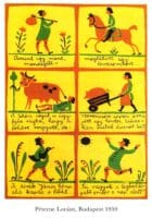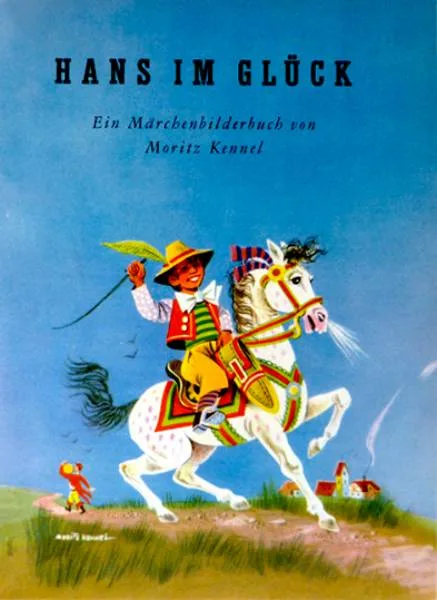 Hans im Glück, illustrated by Felix Hoffman on the left (Public Library) and by Mortiz Kennel on the right (Grimm-Bilder Wiki)