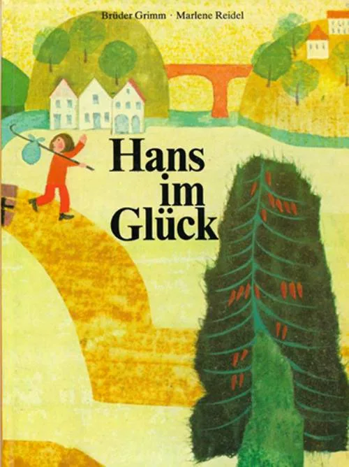 Hermann Woehler’s cover is interesting because even as it lists each of the goods that is exchanged, it foregrounds Hans, who is shown to be a veritable madman. Marlene Reidel’s depiction is also unusual: in her cover image, it is not only Hans, but the yellow path of the journey that is equally the protagonist of the tale, an idea that is also implicit in at least one of the map-images which I have referred to above.
