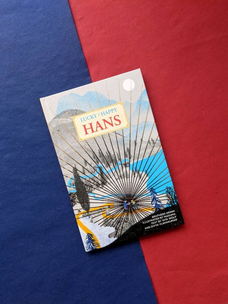 We’re delighted to present Lucky/Happy Hans: a folktale by the Brothers Grimm, illustrated by Spanish artist, Maguma. In the well known story, a young man called Hans exchanges his hard earned piece of gold for one object after another, in a series of increasingly unprofitable trades… until he is left with nothing. Surprisingly, he is happy about this. Is he merely naive… or is he wise beyond his years? Our book interprets this classic tale of greed and need for the contemporary reader, in the form of two parallel visual narratives. The Goethe-Institut, Chennai, helped to bring this book out during a difficult period for all publishers, for which we are really grateful.
