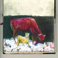 When Maguma completed his visual story, our editor Divya Vijayakumar came up with text for both versions: enigmatic captions for the original tale of exchange, and mock instructions from an ostensible video game for the modern version. Gita Wolf added another layer of complexity to the project, by going into the original German title of the story — Hans im Glück. The word translates both as luck and as happiness — and perhaps gives a clue on how we could interpret Hans’ delight when he loses everything, in the original story. Is he a simpleton, which is one reading of the story — or wise beyond his years, knowing the true basis of happiness? Or can he be seen as a product of changing times, caught between a society used to barter, which was slowly shifting to an economy, given over to profit? Gita Wolf explores these and related issues in two suggestive short essays which provide the context and link the two versions of the story. These ideas are behind our naming the book Lucky/Happy Hans, to indicate some of the complex ambiguities that led Maguma to set out on his own creative journey of interpretation. We leave you to draw your own conclusions on what motivates Hans.