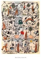 The first thing that struck me was that in many illustrated versions the whole story is represented as a single continuous image. Even in profusely illustrated versions made up of multiple pages, at some point, the entire whole story is presented through a single image, which opens out as a marvelous map.