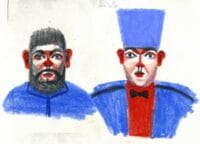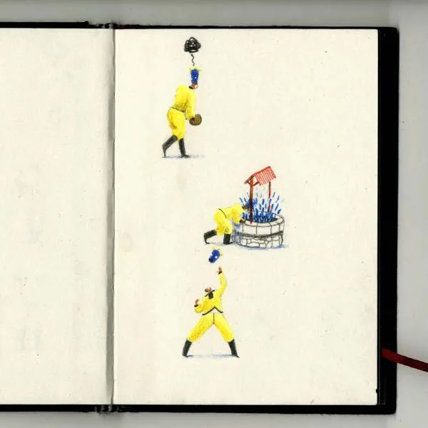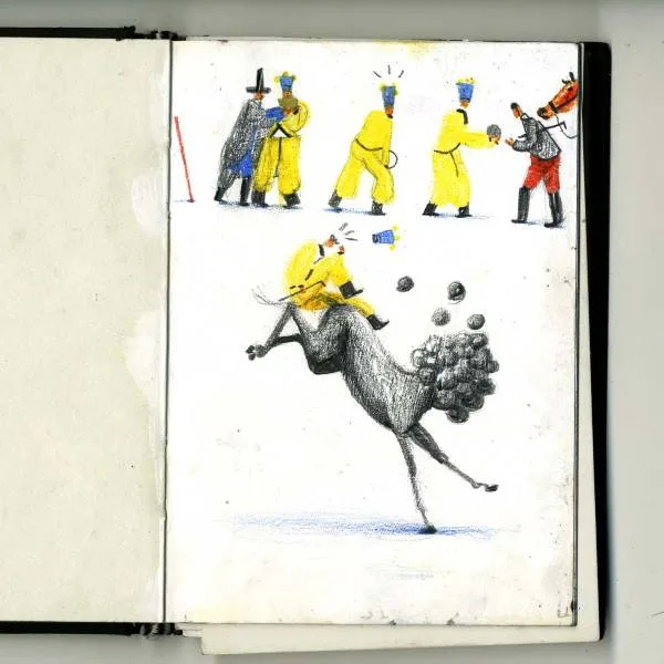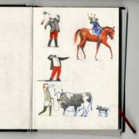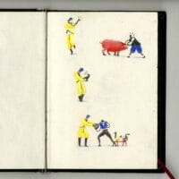 In these initial drawings, I viewed these objects of exchange, from two perspectives: not only Hans’, but also of the secondary characters who trade things with him. To me there seemed to be two aspects to the exchange process, one positive and the other negative. In some cases the object that was acquired from Hans resulted in good fortune for the secondary character in question, whereas in some other cases, it led to misfortune. I also drew the moments of exchange, like other illustrators had done.