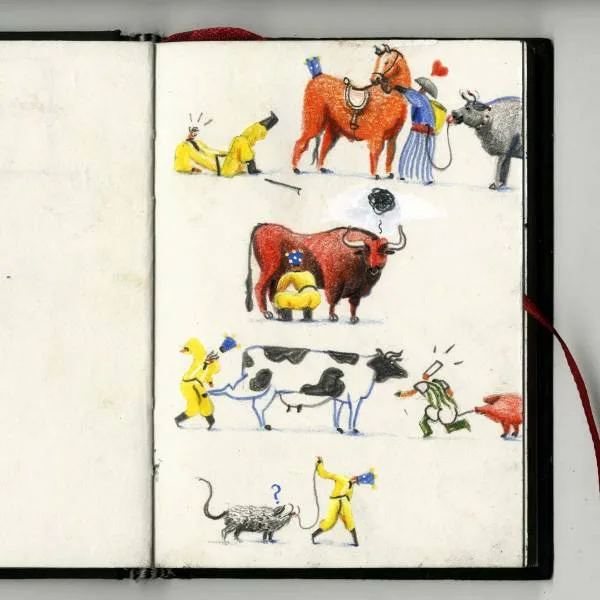 I remember the moment when I received the proposal from Tara Books to work on what became Lucky/Happy Hans. I was very excited with the idea of collaborating with this incredible team again. Also, the idea of traveling to Chennai and being part of the daily life of Tara’s team appealed to me enormously. Thanks to Accion Cultural Esponala, who had also supported my first visit to Tara Books, I was soon on board a plane and all ready to stay and work at Tara’s Book Building for two months.