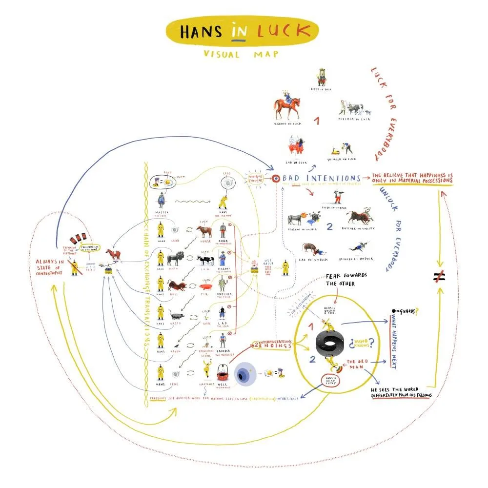 In most of the versions that I reviewed, the story goes the same way: Hans is presented as a poor deluded man who hasn’t understood anything about the value of things. But all of them also gesture towards a hidden enigma that no one questions. Is Hans really crazy? Or is he, perhaps, totally conscious of what he is doing?