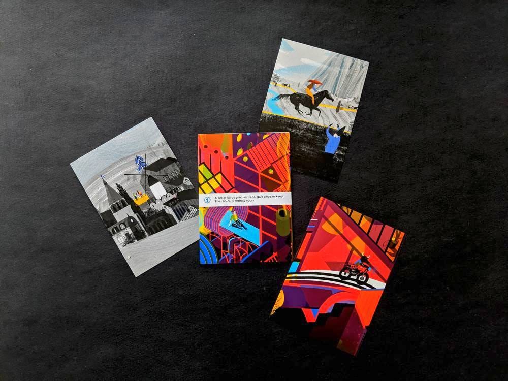 Our latest title Lucky/Happy Hans includes 4 cards for you to give away, trade, or keep… the decision to make a lucky/happy exchange is yours.