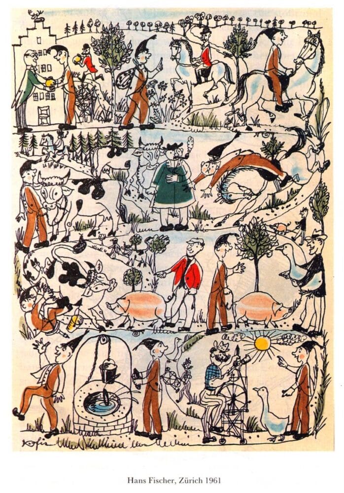 In most of the versions that I reviewed, the story goes the same way: Hans is presented as a poor deluded man who hasn’t understood anything about the value of things. But all of them also gesture towards a hidden enigma that no one questions. Is Hans really crazy? Or is he, perhaps, totally conscious of what he is doing?