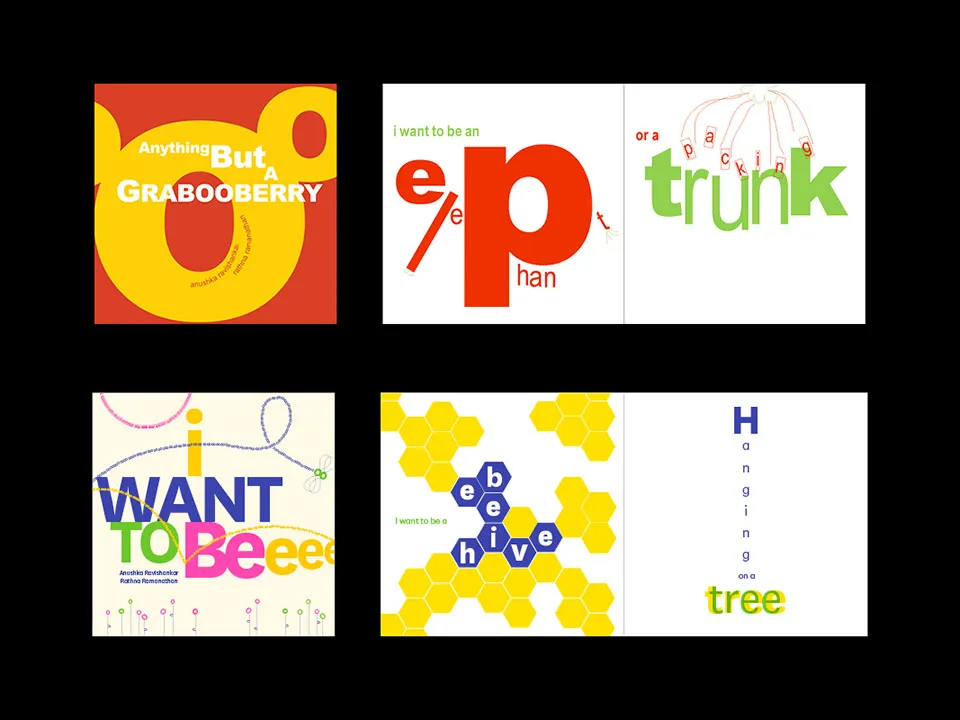 There is a different kind of delight in giving the text to an illustrator and finding it transformed into something I would never have been able to imagine. One book that really left me gobsmacked was Anything But a Grabooberry. The poem started out as something I wrote with my daughter — a freewheeling poem about all the random things she wanted to be. Rathna was looking for a text to illustrate typographically and the abundance of ‘things’ in the poem seemed to lend itself well to that. The Grabooberry was thrown in as a nonsensical element. The book that came out was an amazing typographically illustrated version of the poem. It is now getting a new life with a new name I Want to Be (without the Grabooberry, and therefore closer to the original poem). The typographic illustrations have been updated and refined. And I’m still gobsmacked.