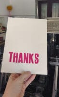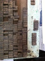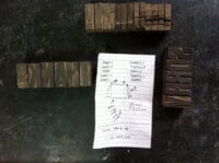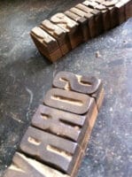 It was a sensory experience, to say the least, to rummage through dusty drawers full of metal and wood type in all shapes and sizes. Sadly, most of the sets were incomplete – since Tara had bought the press second hand, and the type was thrown in – so we found ourselves hunting down characters to form words, as though we were putting together a puzzle. We enjoyed the simple act of laying out the type by hand and trying out different arrangements of the words ‘Thanks’ and ‘Sorry’, and the amusing change in intonation and expression when we added punctuation marks to the word. A simple enough tweak, but the meaning changed – sometimes subtly and sometimes quite dramatically.