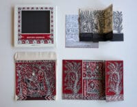 We’re delighted to bring out a new version of The Cloth of the Mother Goddess, an experimental textile book we first published in 2015. It is a recreation of a traditional votive cloth from Gujarat — called Mata-Ni-Pachedi or the ‘Cloth of the Mother Goddess’ — a textile shrine that invokes the goddess. The goddess features in different guises in these shrines, and each has her distinctive divine and human retinue. Believers offer these cloths with images of their guardian goddess to herself… Gifting a piece of creation to the creator is considered the highest form of worship. This is a belief that resonates with artists from other traditions, such as the Rathwa painters who depict the god Pithora and his entourage in their art.