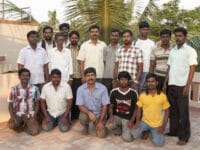 C. Arumugam (bottom-middle) with his team of book artisans at AMM Screens, Chennai