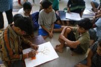 Bhajju Shyam at a children’s workshop in Olcott Memorial School, Chennai in 2007