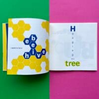 With the experience and confidence we’ve gained, we can now state clearly what exactly this book does: basically, it’s a word puzzle which invites children to recognise letters and make connections between the meaning of a word and its visual representation. It’s a new way of looking at language and scripts, a whimsical take on the building blocks of the alphabet and a tangential approach to recognising objects. Words become objects in all kinds of ways. Collapsing the space between words and pictures—as the word illustrates itself—the book makes the case for lateral thinking. What’s not to like?