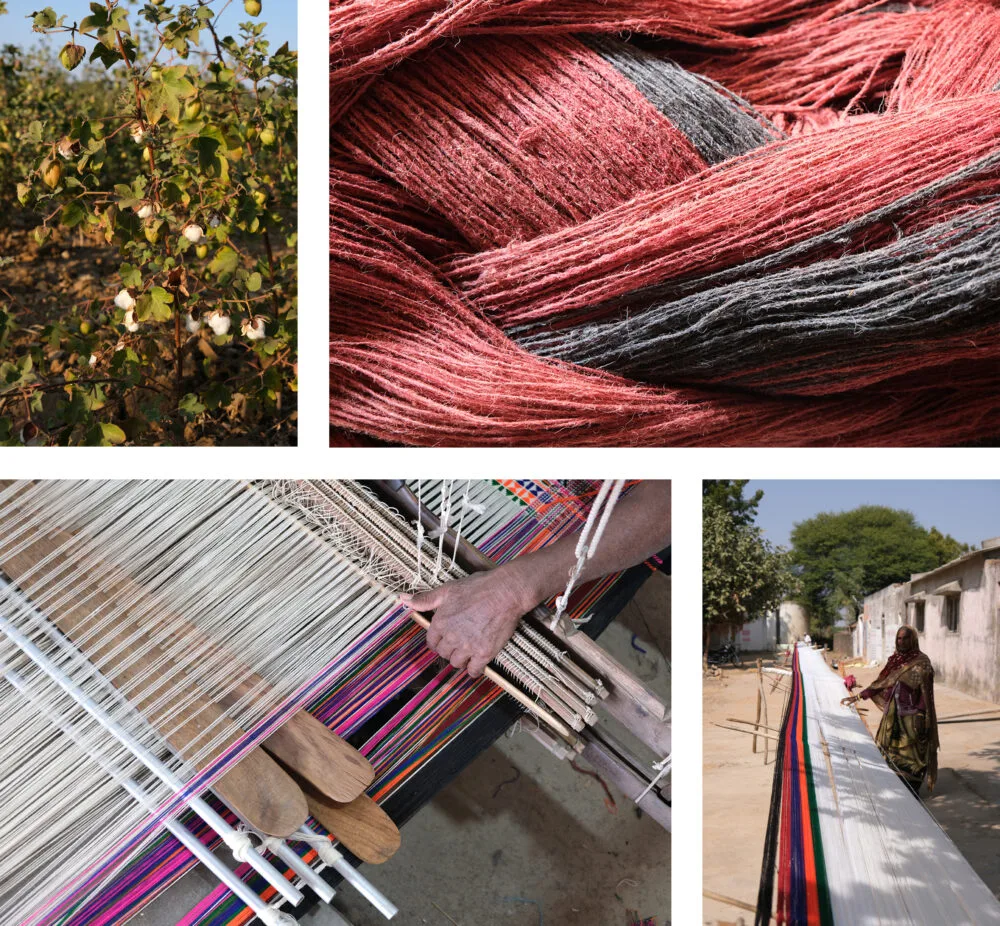 The indigenous kala cotton plant; dyed yarn; sizing the warp; weaving on a loom