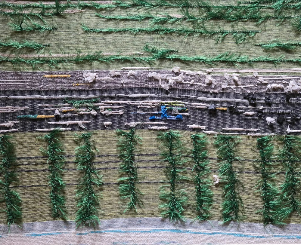 was inspired by the waste strewn in her village and wove this piece using bits of plastic