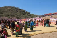 Guests at a community wedding where almost 30 couples were married in a common ceremony