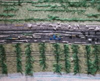 Arun Meghji Sanjot and Sureshkumar Maganlal Dhaiyda display textiles to be photographed;