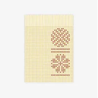 Silkscreenprinted on handmade paper, this captures the interweaving of a block print with the warp and weft of the fabric, using traditional textile motifs. Created by Aditi Jain for the visual anthology, Travelling Patterns, it is part of a sequence of images that comprise traditional Indian textile motifs, and which tell a story of weaving.