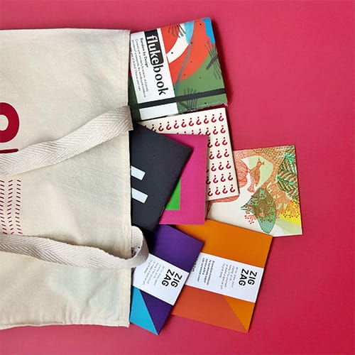 A hand-picked selection of stationery from Tara, packed in gorgeous handmade and screen-printed gift bags.
