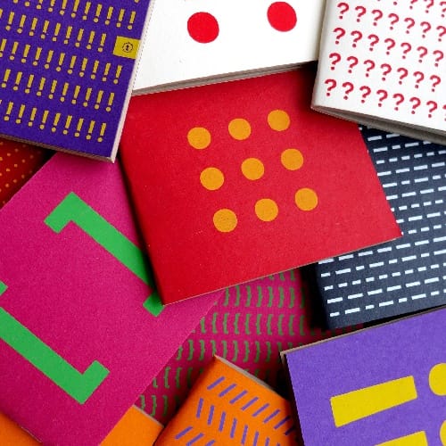 Each of the notebooks in this pack comes bound in a gorgeous silk-screened cover, featuring bold and detailed punctuation marks on either side. With sturdy brown kraft paper pages, your jottings are guaranteed to be clear, correct and expressive.