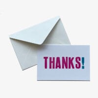 This card plays with the meaning of the word ‘Thanks’ and is designed to tweak how language communicates. Just by adding a punctuation mark, it allows you to express gratitude or remorse (and other emotions in between) on any occasion. Also available as part of the Sorry? Thanks! Mixed Emotions card box.